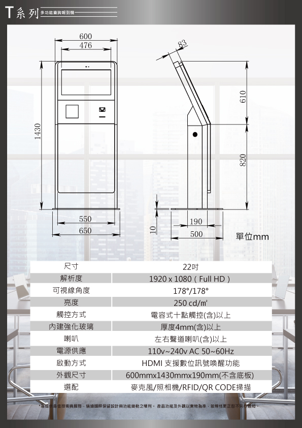 商品資訊-【本月活動】T系列 21.5吋 多功能自助報到機/全平面電容式觸控
